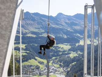 Einmalig in den Bünder Bergen: die erste Zipline in Graubünden auf dem Erlebnisberg Pradaschier in Churwalden!