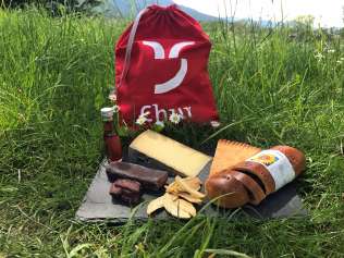Bei der Dreibündenstein Genusswanderung gibt es nebst dem Rundwanderticket ein Churer Picknick Säckli mit auf den Weg und bei der Genusswanderung mit Pfiff lockt ein 3-Gang Bündner Menü und eine Rodelabfahrt.
